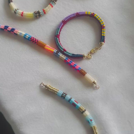Joyfully handwoven using the finest quality Japanese glass seed beads and finished with 14k gold filled clasps.