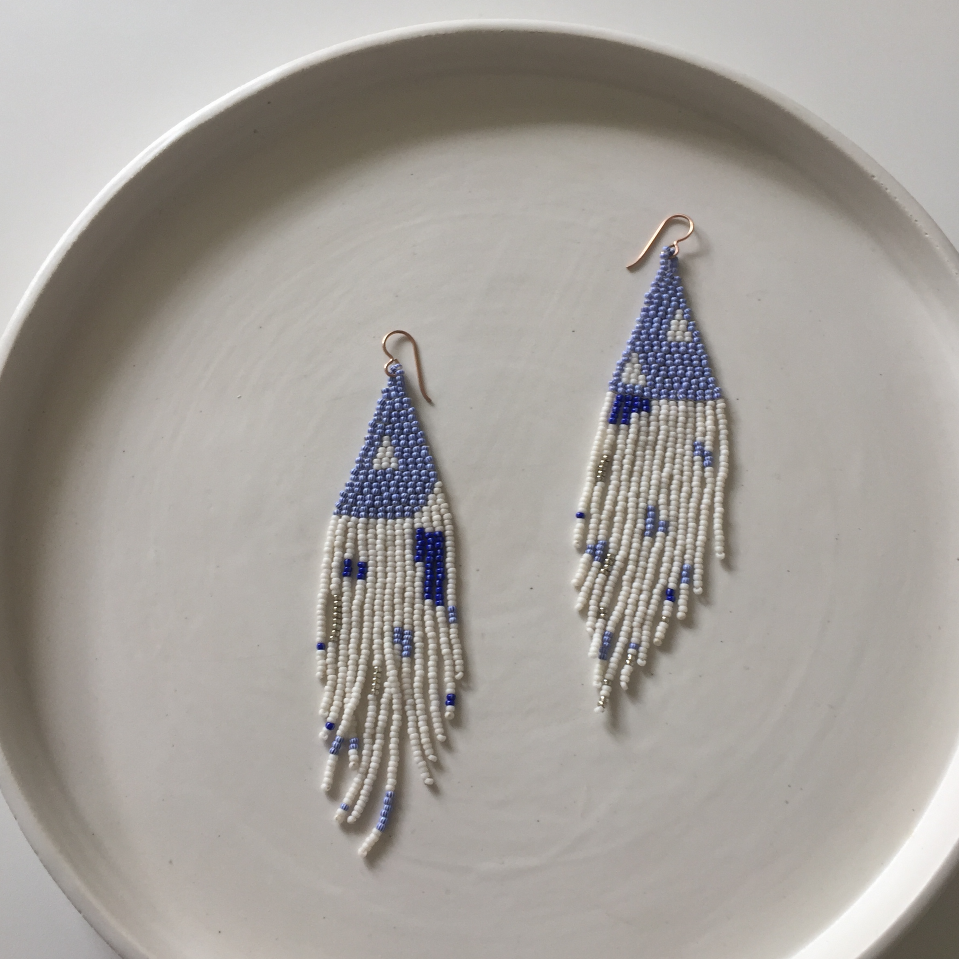 All earrings are joyfully handwoven using the finest quality Japanese glass seed beads and finished with 14k gold French ear wires.
