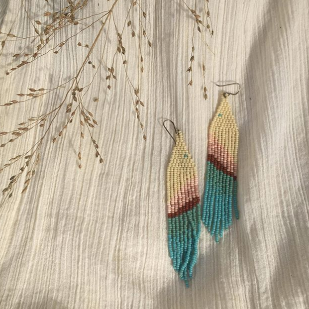 All earrings are joyfully handwoven using the finest quality Japanese glass seed beads and finished with 14k gold filled French ear wires.