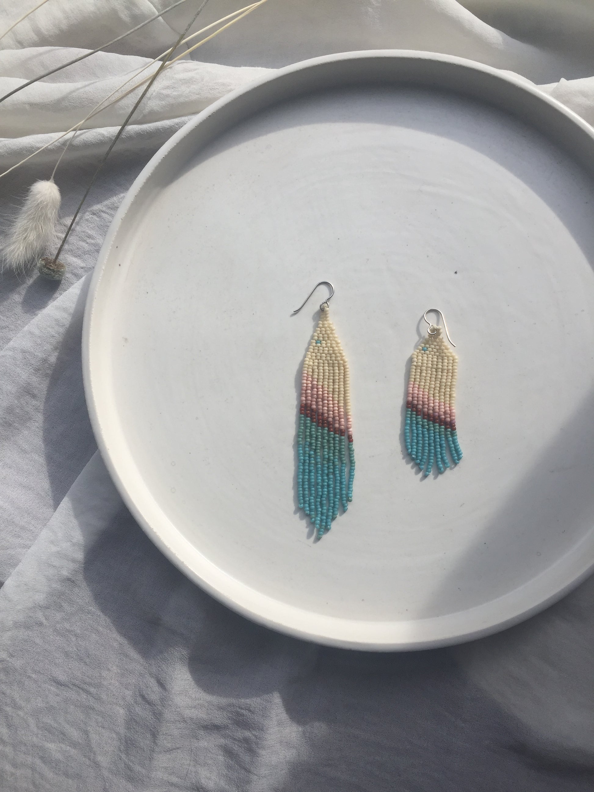The classic Jenna earring. Beautiful matte cream beads fade from pink to turquoise.